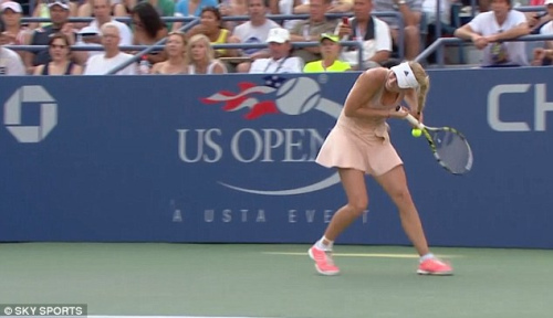 沃兹尼亚奇回球遇尴尬 辫子缠球拍无法挥拍(图)