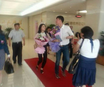 【新民晚报·新民网】2014年9月8日上午,即中秋节当天,飞人刘翔出现在上海市普陀区婚姻收养登记中心,有网友曝出了一张疑似当时的照片:刘翔手捧鲜花,身边还挽着一名长发女子。
