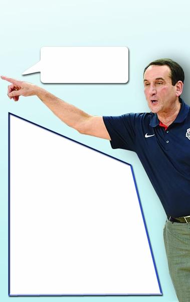 图为:美国男篮主帅、绰号“K教练”的迈克·沙舍夫斯基剑指冠军。
