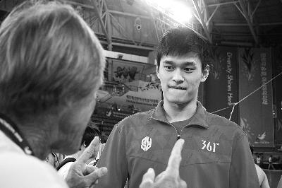 ▲孙杨耐心倾听外教丹尼斯的指导 摄/法制晚报记者 张岩