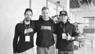 ■ 世界翼装飞行联盟主席伊罗·塞伯伦(中)和世界顶尖翼装飞行运动员詹姆斯·波尔(左)给予张树鹏很多技术指导