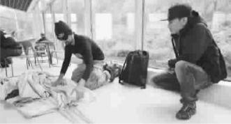 ■ 张树鹏认真观看詹姆斯·波尔试飞前收拾装备