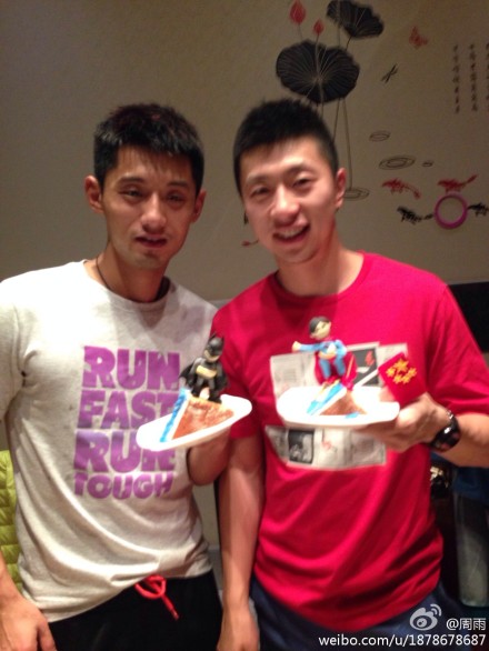 男乒众将为26岁马龙庆生 张继科眼神迷离(图)