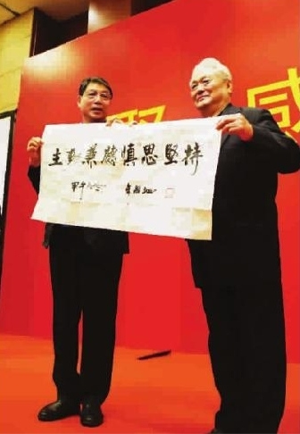 根宝的恩师年维泗登台致辞时,最后也仿佛用尽全身的力气,高举左手大吼了一句:“让我这个80多岁的老头跟大家一起喊,奋进!”