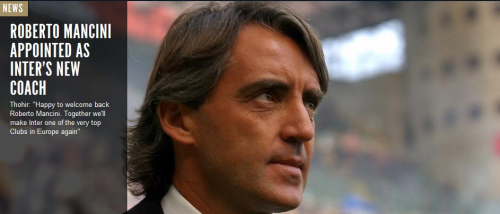 曼奇尼回归能否带国米脱离困境?图片来源:国米官网截图