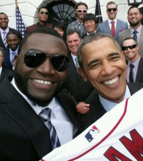 美国总统奥巴马在2014年4月欢迎世界职业棒球大赛冠军波士顿红袜队做客白宫,并与明星球员大卫-欧提兹自拍合影。在收到欧提兹赠送的印有自己名字与“44号”号的球衣后,奥巴马表达了想拍照的愿望。这时,欧提兹拿出自己的手机,两人面带微笑自拍留影。奥巴马说:“体育运动能将人们团结在一起,这是其他活动所不具备的魅力。”