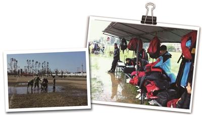 昨晚,记者联系上了正在广西北海训练的一位青训教练,他告诉记者,“这两天梧州和北海都下了大雨,北海这里整个(场地)都淹了,今天出太阳了,但水还是没有下去。听说梧州那里场地的积水更严重。”记者又立刻联系上了一位正在梧州带队训练比赛的教练,他告诉记者:“梧州这里好像进行过修整了,场地比去年好多了。”尽管这么说,但记者还是在这位教练发的微信图片中看到,雨后梧州足球训练基地的场地上,积水大片存在。