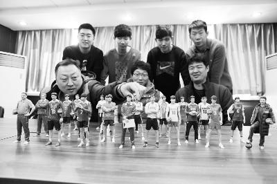 北汽男排将士聚在一起欣赏全队的3D打印玩偶 摄/法制晚报记者 张岩