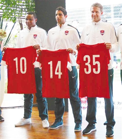 力帆足球俱乐部队新赛季新增外援球员亮相。记者 卢越 摄