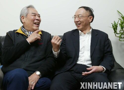 刘鹏(右)与中国男篮名宿钱澄海 图片来源:新华网