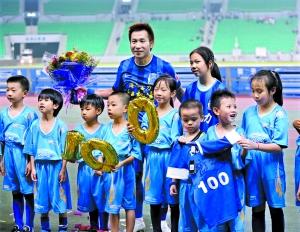 赛后,富力俱乐部为卢琳举行了百场庆祝仪式。 广州日报记者 廖艺 摄