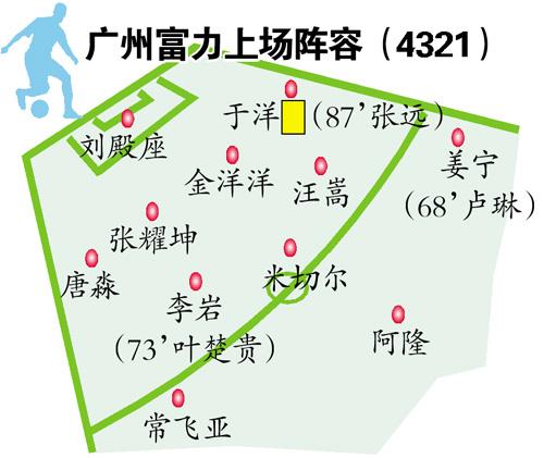 此役,富力主力外援前锋哈默德和左后卫姜至鹏因伤缺阵。中后卫于洋客串左后卫,阿隆出任中锋。在国足新一期30人大名单中,富力后防线的姜至鹏、金洋洋、于洋和门将刘殿座纷纷入选。因此,此役富力的首发后防线拥有3名国脚,再加上前国脚、富力队长张耀坤和近来状态不错的唐淼,堪称“豪华”。但就是这样看起来强大的后防线却在实战中形同虚设,被联赛“副班长”连进3球。