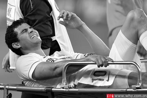 申花核心莫雷诺在比赛中受伤,所幸赛后证实问题不大。新华社 图
