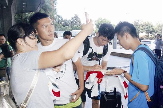 国足帅哥抵汉:曾诚携家人报到 翻译哥最抢风头