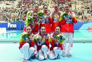 花样游泳集体技术自选的决赛,俄罗斯夺得冠军,成绩是95.7457分。拥有三位江苏姑娘的中国队以1.3分的差距获得第二名,中国队表演的节目叫《骸骨之城》,音乐取自电影《骸骨之城之圣杯神器》。