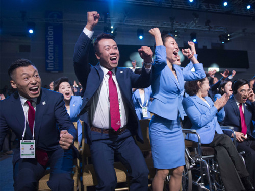 现场掌声雷鸣,巴赫第一时间走下主席台,与代表团成员们一一握手表示祝贺。北京申冬奥代表团用胜利为这次马来西亚之行画上了圆满的句号。