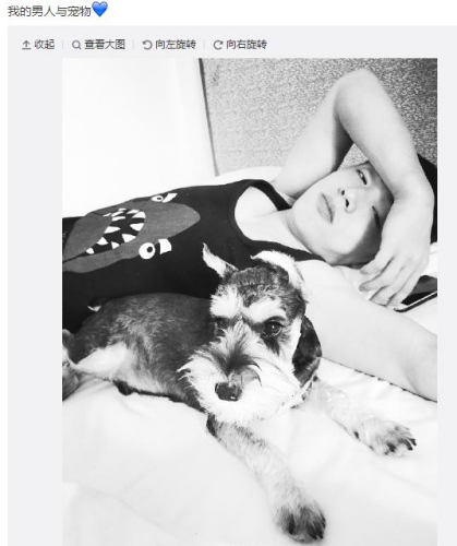 中新网8月3日电 昨天下午,艺术体操美女周捷在微博中晒出了老公邹凯与宠物小狗的合照,照片中邹凯躺在床上,亲昵地将小狗抱在胸前。网友看后称赞邹凯越来越帅,同时催促两人快点生个宝宝。