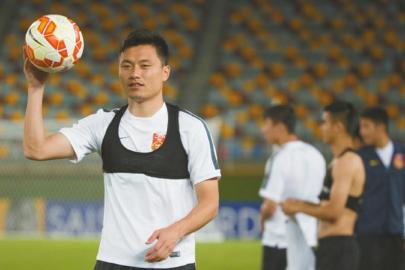 郜林身穿高科技背心训练。图片来源:华西都市报