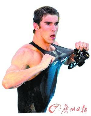 菲尔普斯身穿鲨鱼皮泳衣。图片来源:广州日报