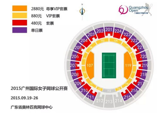 中新网8月24日电 2015年广网将于9月19日-26日在广东省奥林匹克网球中心举行。日前,2015年广州国际女子网球公开赛已经正式通过微票儿和11185票务开启预售。值得一提的是,根据组委会提供的票务信息,购买2880元尊享VIP票的球迷,将获得受邀参加球员晚宴的珍贵机会。