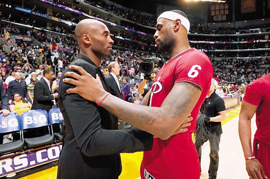 在詹姆斯代表骑士出战的前7个赛季,两人共交手13次,詹姆斯赢了其中的8次,但科比在这7年中收获了两枚总冠军戒指。当詹姆斯由骑士转投热火后,逐渐成熟的他帮助热火拿下两枚总冠军戒指,而在与科比的对决中,詹姆斯再次以5胜1负取胜。在这一阶段,两人逐渐完成了联盟头号巨星的交接,联盟也在这样的交替过后,正式进入了“三巨头”的时代。