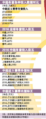 中超冬季转会窗关闭:引援大跃进 标王四易主
