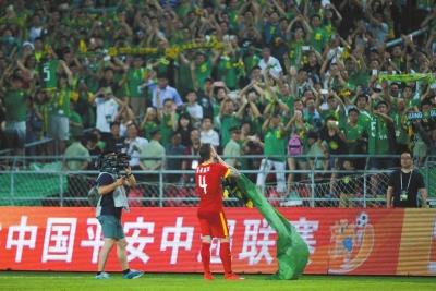 马季奇谢场时与国安球迷互动。京华时报记者潘之望摄