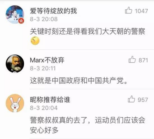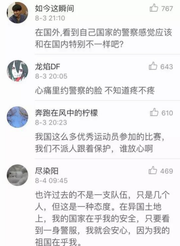 网友齐赞中国警察现身里约 警方微博:低调,低调!