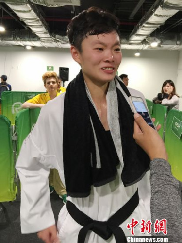 “走到这里就想哭。”中华台北跆拳道队女选手庄佳佳来到混合采访区,挤出一丝笑容,却怎么也掩不住泪痕。