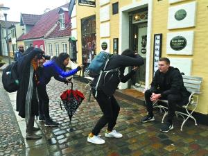 在欧登塞土生土长的安赛龙第4次到安徒生故居,并娴熟地摆出各种姿势让记者拍照。 特派记者 杨敏 摄