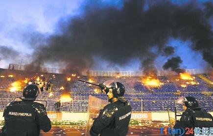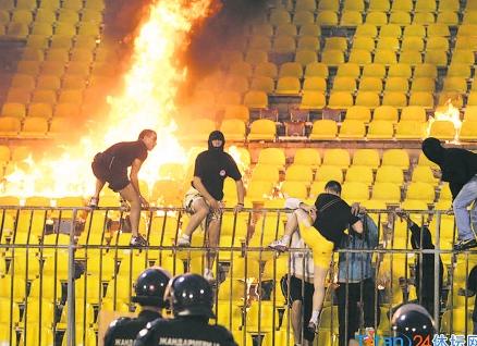 贝尔格莱德游击队VS贝尔格莱德红星队,这被称作是塞尔维亚的“永恒德比”。昨晨,两支球队在塞尔维亚甲级联赛第24轮再次相遇,游击队2比0完胜红星队。这一结果让客队球迷大为不满,他们纵火烧毁看台,熊熊燃烧的火堆将体育场变成了篝火晚会,场面蔚为壮观。最终,有51名足球流氓被警方逮捕。