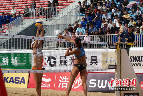 中新网上海5月7日电(记者 周靖翔 宗晨亮)7日,2010年FIVB世界沙滩排球巡回赛中国公开赛继续在上海金山举行。中国奥运铜牌组合在先输一场的情况下,在复活赛中力克对手,晋级前七名。