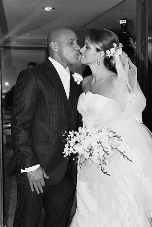 当地时间14日,效力于费内巴切的卡洛斯在到场的600名嘉宾面前,展示了自己精湛的球技,然后,深情地许下了“我愿意”的诺言。到场嘉宾除了土耳其当地的名流富商外,还包括歌星亚历山大·皮尔,队友儒尼尼奥等。