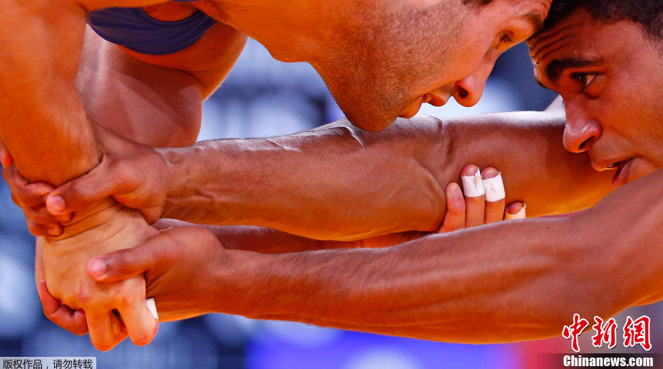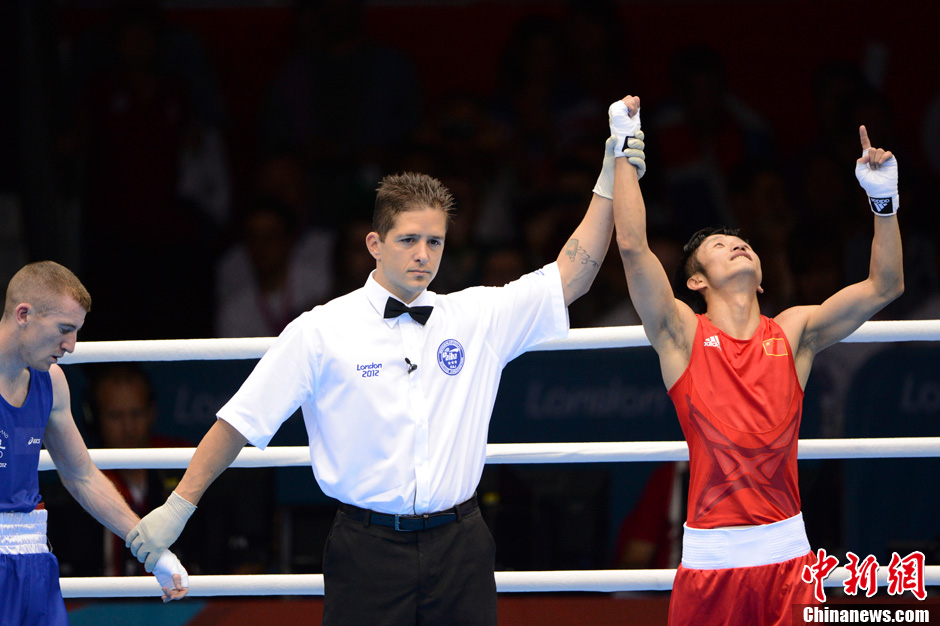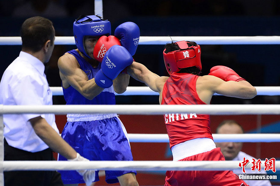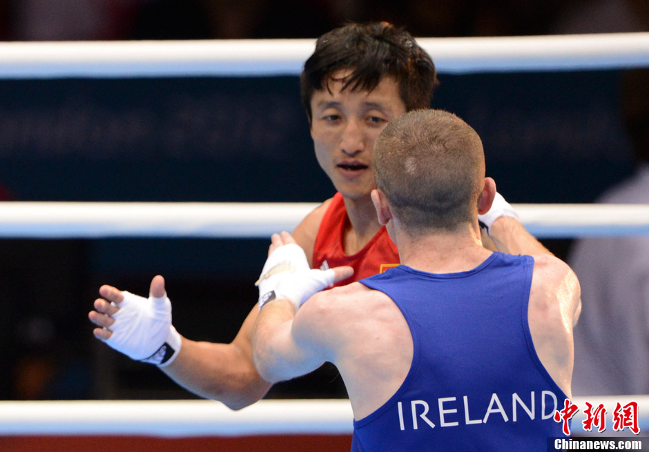 拳击男子49公斤级邹市明遭败阵对手“掐脖”