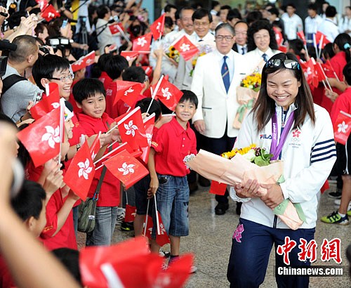 伦敦奥运会香港代表团返港受到热烈欢迎