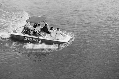 下午4时30分,殷剑与陈勇的婚礼在邛海岸边的邛海宾馆正式举行。率先进行的是“水上婚礼”。殷剑和陈勇分乘两艘小船,从两个不同的方向,向停靠在岸边的豪华游轮会合。
