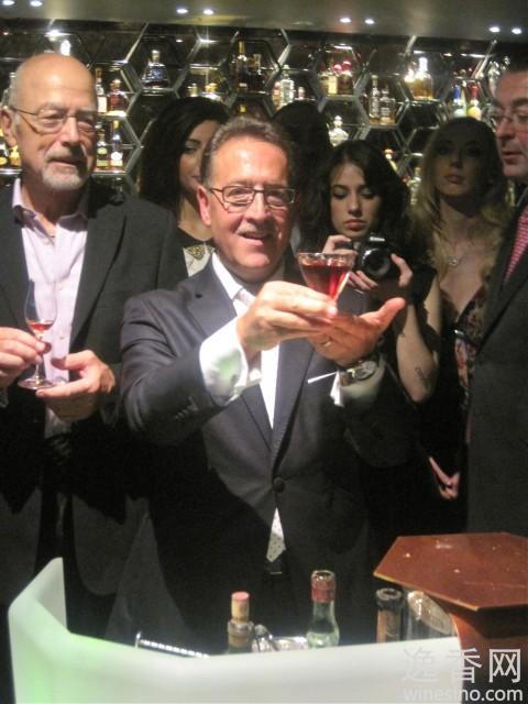 接下来的三瓶的则较为容易被打开了。Calabrrese用他随身的调酒器将所有的配酒混合调制之后,倒进了用来盛装年份鸡尾酒的酒杯。