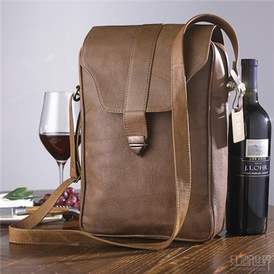 这种棕褐色的皮革邮差包可放入一到两瓶葡萄酒,非常适用于葡萄酒专业人士。里面带有的可拆卸酒瓶分隔层,设计很别致。(编译/Suzy)