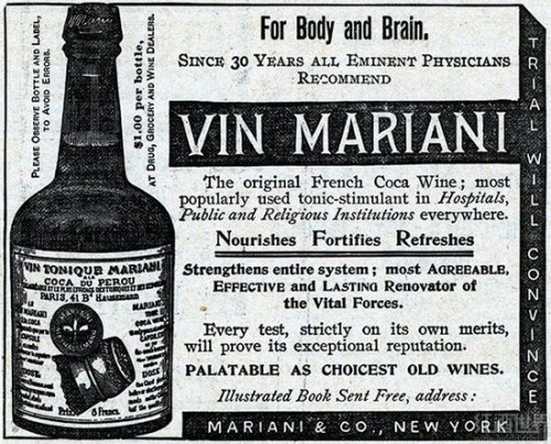 你知道吗?可口可乐是基于波尔多葡萄酒发明的。其实这种饮料叫做马里亚尼葡萄酒(Vin Mariani),它是葡萄酒和古柯叶的混合物。酒中的酒精从古柯叶中提取了可卡因,使这种饮料表面上能够使人恢复健康和活力。很多名人喜欢这种饮料:尤利西斯·辛普森·格兰特(Ulysses S. Grant)、大仲马(Alexander Dumas)、托马斯·爱迪生(Thomas Edison),甚至教皇都喜欢喝。