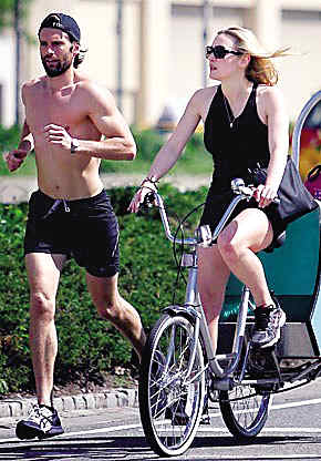 离婚不到五个月的奥斯卡影后凯特·温丝莱特似乎又迎来了人生中新的一段恋情。近日,她被拍到与绯闻男友路易斯·杜勒一同在纽约城街头锻炼的画面,光着膀子的英国男模杜勒以一身运动装束在慢跑,而温丝莱特则骑着自行车陪伴在一边。而这也是媒体首次曝光两人在一起的照片。
