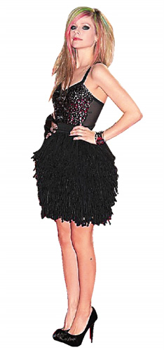 艾薇儿·拉维尼的黑色短裙好像把拖把穿上身,还好彩色挑染的头发总算找回点摇滚美女的气质