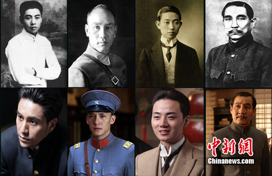 中新网4月19日电 献礼建党90周年的电影《建党伟业》已进入紧张的后期制作环节。日前,片方再曝光一组由周恩来、蒋介石、梅兰芳、孙中山组成的“民国四美男”剧照。“我们希望通过电影去还原那个年代的各个方面。”片方介绍称。