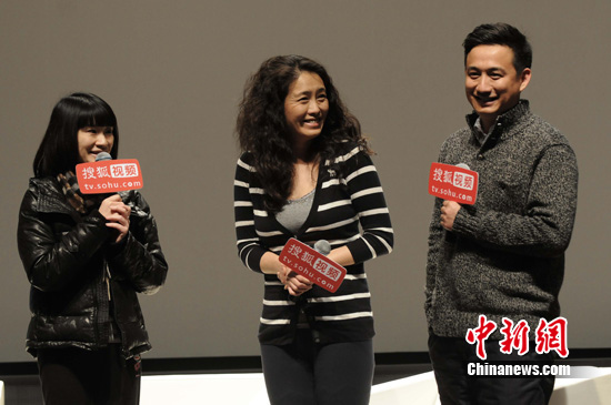 参与互动(0)贾妮(中)与甘露力挺好友黄磊微电影