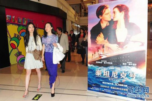 2012年4月6日,在UME国际影城观看由詹姆斯-卡梅隆导演的鸿篇巨制3D版《泰坦尼克号》的人群中见到刘亦菲。该影片预计本月内在全球范围内上映,以纪念泰坦尼克号沉没100周年。 李欣 摄