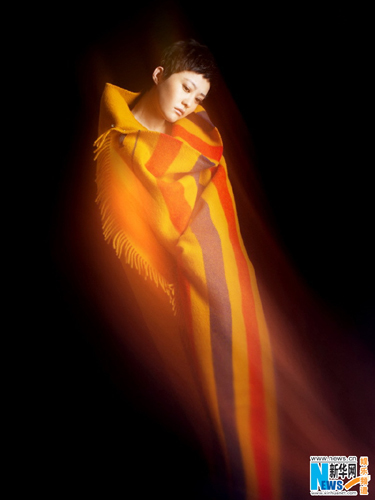 郝蕾以橘色毛毯裹身神秘 似破茧而出浴火重生(图)