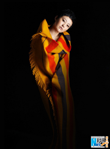 郝蕾以橘色毛毯裹身神秘 似破茧而出浴火重生(图)(2)