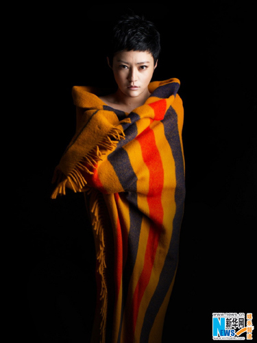 郝蕾以橘色毛毯裹身神秘 似破茧而出浴火重生(图)(4)