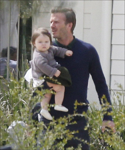 贝克汉姆夫妇带女儿外出 哈波萌态似洋娃娃(图)