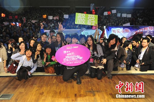 何洁坐轮椅穿"萌鞋"现身 携手严爵献唱拉票会(图)(4)