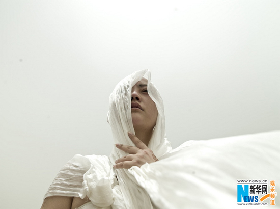 郝蕾光头白纱感悟心灵 称长发不在五官更清晰(图)(4)